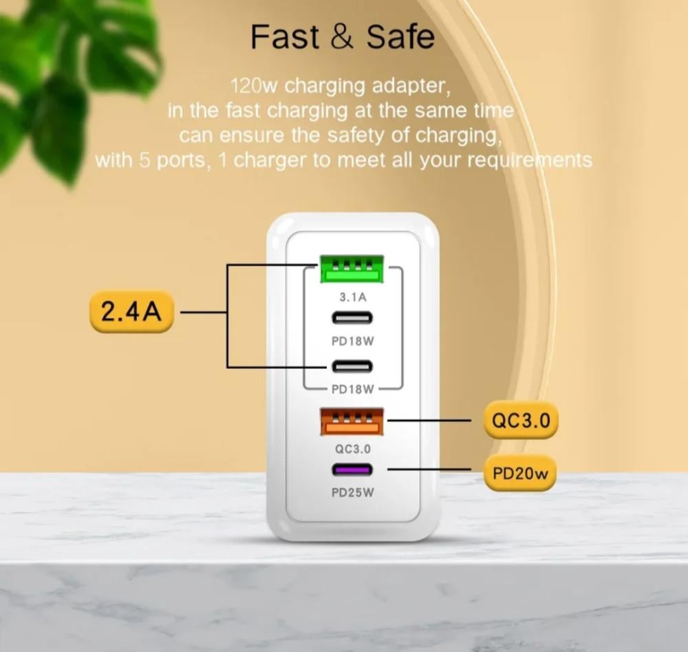 شاحن أجهزة 5 مداخل 120 واط